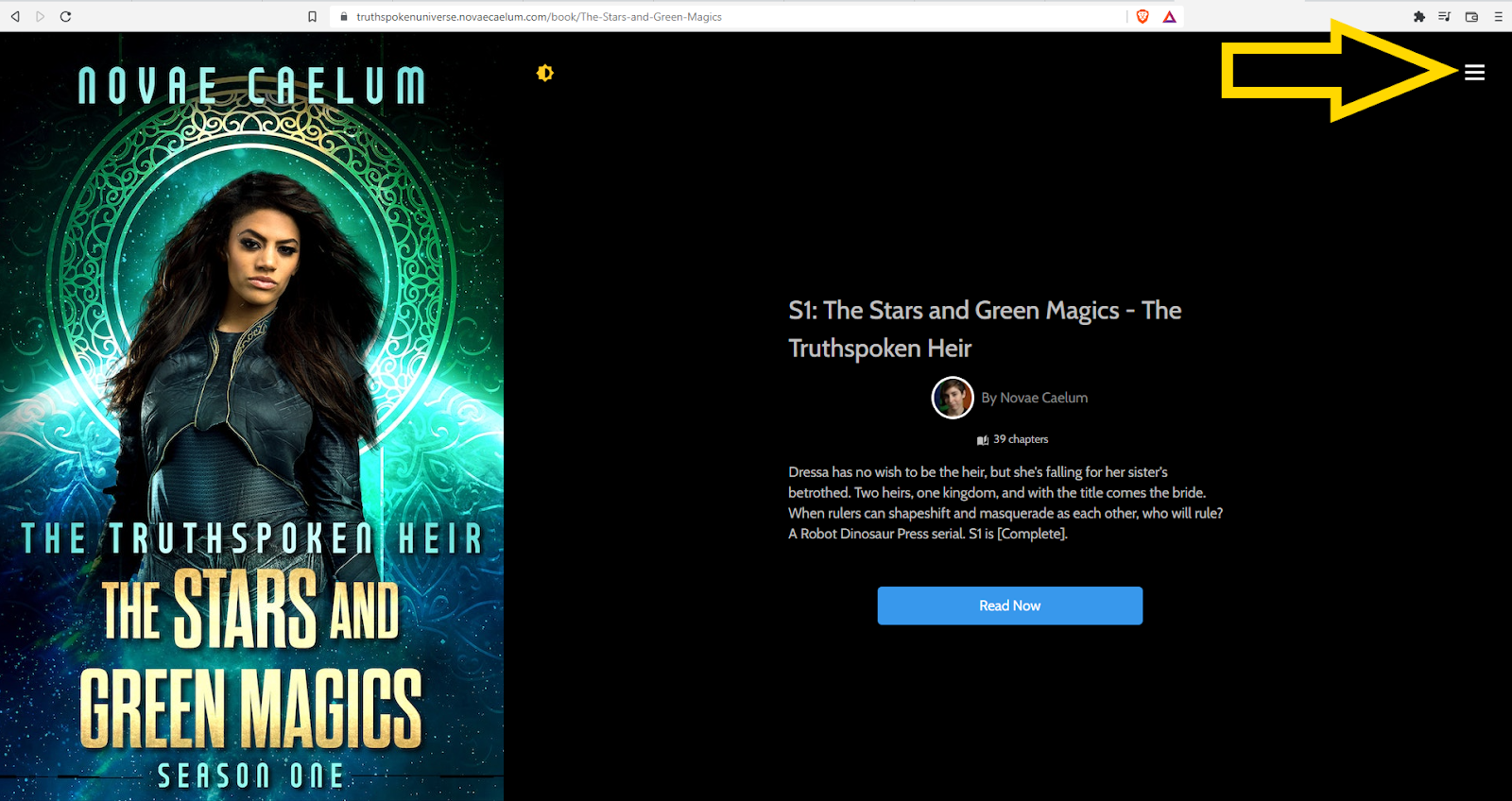 While logged in on your account and reading a book on Laterpress, open up the menu. This can be done from the cover page, or from any chapter in the story.